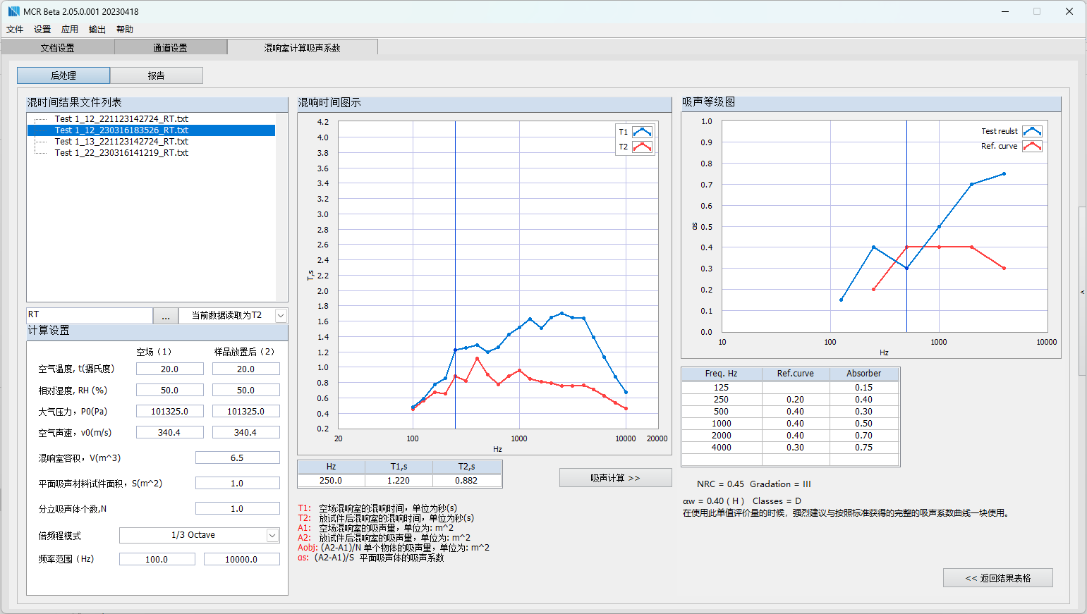MCR-ABSR模塊為混響時(shí)間數(shù)據(jù)的后處理模塊,用于混響室法測量材料…